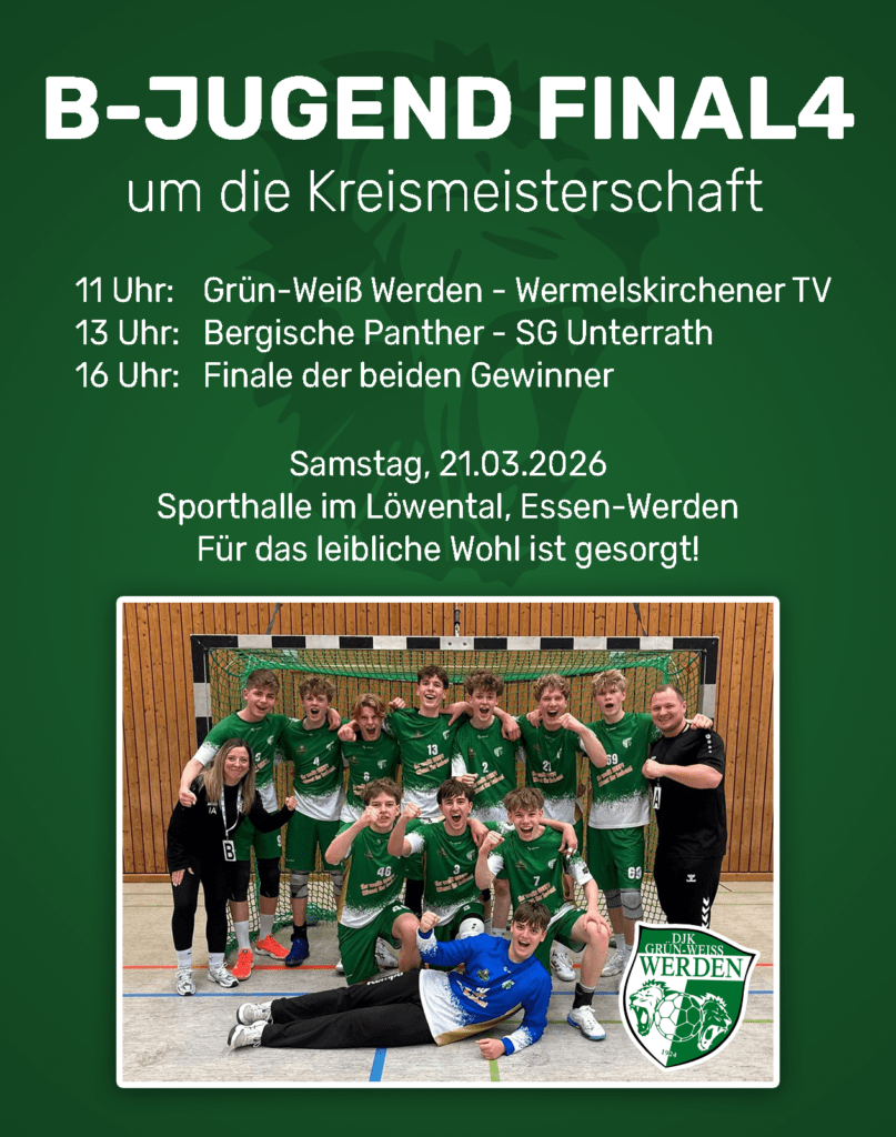 Am Samstag findet das Final4-Turnier der B-Jugend um die Kreismeisterschaft statt. Am Sonntag spielen dann unsere Damen im gegen Witzhelden um den 1. Platz und den damit verbundenen Aufstieg in die Verbandsliga. Im Anschluss spielen dann auch noch unsere 1. Herren.